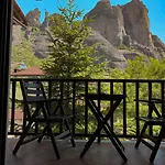 The Elena Guesthouse offers rooms with an adjoining terrace and a dressing area featuring ironing equipment and climate control, along with a flat-screen TV with satellite channels and wireless internet. They are appointed with carpet flooring, sound-proof windows. Extra long beds with hypoallergenic down pillows as well as electric blankets are also available. Bathroom amenities include a separate toilet, a shower, and a sink, along with comforts such as hairdryers and a shower cap. Staying at this Kalambaka hotel, guests can enjoy view of the garden.